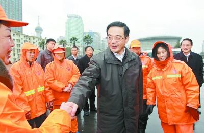 2月7日,省委書記、省人大常委會主任周強在長沙看望慰問環(huán)衛(wèi)工人。 記者 張目 攝