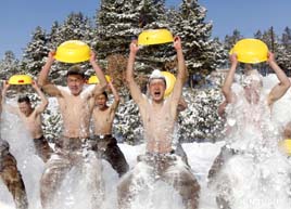 邊防官兵極寒天氣赤膊浴雪 血性十足“虎”嘯雪域邊關(guān)