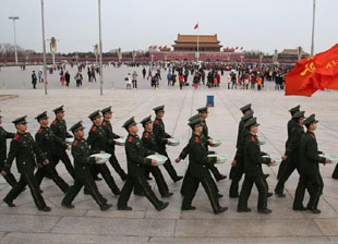 數(shù)百名武警攜臉盆抹布清洗天安門廣場(chǎng)