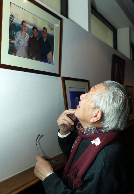 12月7日,一位林風(fēng)眠作品愛好者正在欣賞林先生的家族照片