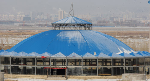 2月17日拍攝于新疆克拉瑪依市農(nóng)業(yè)開(kāi)發(fā)區(qū)戈壁灘上的“天下第一包”內(nèi)景