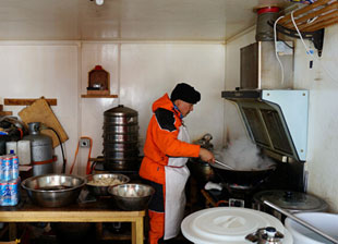 因?yàn)樾枰谇餁龆冗^一些時(shí)日,牧民們將帳篷搭建在秋殺場旁的河邊,里面布滿了生活必需品,睡覺用的卡墊、生火煮飯用的藏式鐵爐一應(yīng)俱全,而從家里趕過來宰殺的牦牛會(huì)被暫時(shí)放養(yǎng)在附近的山上。
