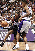 Iverson, whose various bruises around his hips and buttocks hampered him in Game Two, scored 28 points and got plenty of support from his teammates as the 76ers took back the homecourt advantage they sacrificed by resting the battered league Most Valuable Player in Saturday's Game Three six-point defeat. Dikembe Mutombo scored 17 points and grabbed 15 rebounds and Tyrone Hill scored 14 and snared six boards. "We knew that we played a great game on Saturday but we just didn't finish our job," said Mutombo. "So we came out tonight we tried to play hard from the beginning with the help of AI (Iverson) and it was just great." Eric Snow, like Hill a disappointment in Game Three, made some big plays down the stretch for Philadelphia and recorded three steals, three assists and four rebounds playing 26 minutes on an injured ankle.. Aaron McKie had nine assists and Iverson, who played all but a fraction of a minute, dished out eight. Reserve Jumaine Jones scored eight points and grabbed nine rebounds in 27 minutes. BIG DOG For Milwaukee, Glenn "Big Dog" Robinson scored 20 points and collected 10 rebounds but lost his cool and drew two technical fouls late in the game for continuing to argue after Snow stole the ball from him and no foul was called. Tim Thomas came off the bench to score 15 points and Sam Cassell and Ray Allen each had 14 points as the "Big Three" of Robinson, Cassell and Allen came up short for the Bucks. It was a rough game typified by a play with two minutes to go when Allen, protecting the ball, hit Iverson with an elbow, sending him to the floor. Iverson stood up like a wobbling boxer, blood in his mouth. Allen grimaced over the pain in his elbow, which also was bleeding. No foul was called. Snow made perhaps the biggest shot of the game with 2:18 to go when Iverson was in trouble in the lane, managed to get the ball back to the top of the arc and into the hands of McKie, who whipped it around to Snow on the left side for a jumper to make it 82-75, Snow then made the steal off Robinson, who appeared to have been bumped by McKie, and an Iverson layup made the score 84-77. Iverson then stole the inbounds pass and was fouled with 59 seconds remaining, and the still-fuming Robinson was called for two technical fouls. Iverson made three of the four free throws to put the Sixers -- the best road team in the league during the regular season -- up by 10, the biggest lead of the game. Game Five is Wednesday in Philadelphia. "With Allen feeling good definitely we're going to win that game in Philadelpia and then we're going to come here and try to finish it off," Mutombo said. |