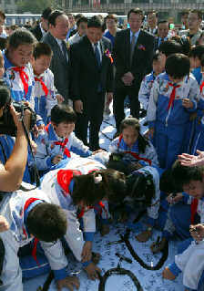 The brief event at the Millennium Monument, an outdoor stage in western Beijing, started with the release of five giant balloons into the air. Each held metres-long ribbons in various colours of the Olympic rings. The balloons floated skyward as more than 2,000 children used paintings and red scarves to form a huge 2008 Olympic emblem, a Chinese character for the name of Beijing drawn to look like a running athlete. "Culture is one of the important part of the 'People's Olympics,' one of the three themes for the 2008 Beijing Olympics," said Liu Qi, president of the Beijing 2008 Olympic Organizing Committee, who joined the children with city officials in forming the emblem. "We expect that the festival will help promote Chinese culture and the themes of the 2008 Games," he added. Beijing is flagging "Green Olympics, High-tech Olympics and People's Olympics" as the themes of the 2008 Games. The 10-day festival will last until September 30, featuring exhibitions, symposiums, concerts and public events. Tens of thousands of people, including foreign scholars, experts and business people, are expected to attend.