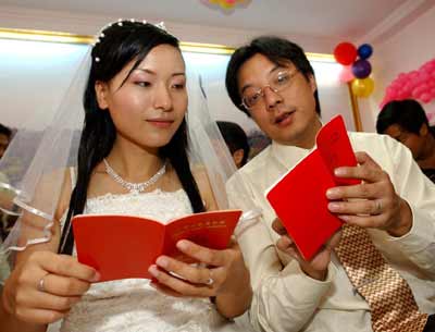 All the marriage registration departments in China are ordered to stay at work, for the first time, during the national week-long holiday in preparation for a possible marriage wave sparked by the new rules, said Zhang Mingliang, director-general of the grassroots governments and community development department with the Ministry of Civil Affairs. "Marriage registration offices around the country should carefully adjust their working hours to ensure a smooth process of the marriage registration," said Zhang, who is in charge of the registration work in the country. Analysts say the number of couples registering for marriage may rise to a record high during the holiday as the new rules further relax constraints on marriage. At 5:00 in the morning, dozens of couples began waiting outside registration offices in Xuhui District, Shanghai. "We hope the National Day will add to our happy day," smiled 28- year-old Pang Ying, who with her Japanese boyfriend Tanino Takayoshi became Shanghai's first couple registering their marriage under the new rules. In major cities like Shanghai and Guangzhou, all the wedding banquets in luxury hotels during the week-long holiday are booked out for weddings. Local officials said more than 100 couples in Chongqing, the biggest city in west China, had telephoned local marriage registration offices in advance saying they would register on Oct. 1. In China's capital Beijing, marriage registration offices have been told by the municipal authorities to "stay at work as long as couples are queuing for registration" on the National Day. "We feel really happy to get married without a letter from our employers testifying our marriage status or a forced health examination," said Wu Wei, as he and his girlfriend became the 84th couple to register their marriage at a registration office in Furong District, Changsha, capital of central China's Hunan Province. Under the new regulations, couples need only show their ID cards and residency papers and sign a document stating they are not married or related to register their marriages, thus stopping the involvement of "Danwei" or the state-owned working units, which was previously essential. Zhang, a civil affairs official, said the new marriage regulations and its working norms must be obeyed by officials. "Those who force prospective newlywed couples to have health examinations, or charge extra fees will face severe punishment," he warned. Analysts say the development of the private economy and the increasing floating population make it impossible to continue the old requirements, which were adopted in 1994. The old requirements were suitable only in the old planned economy era when a person's work unit controlled many aspects of people's life including housing, health care and children's education. Requirements waived in the new marriage registration rules also include the demand forcing people to undergo health examinations before they wed. Among the queues are also those couples who want to end their love. "We came here because we can't continue our relationship," said a young man who just had his divorce registered in Xining, capital of northwest China's Qinghai Province. "We don't want to wait for others to mediate our relations," he said. In the past, a couple had to wait for a month mediation from civil affairs departments before getting divorced, a requirement also abolished in the new marriage registration regulations. However, migrant couples will still have to apply to marry or divorce in either spouse's home province, rather than register in a third place. The number of Chinese registering for marriage dropped from some 8.92 million couples in 1998 to 7.86 million last year, according to the All-China Women's Federation. But the number of divorces has remained stable in the past five years, at about 1.2 million each year.