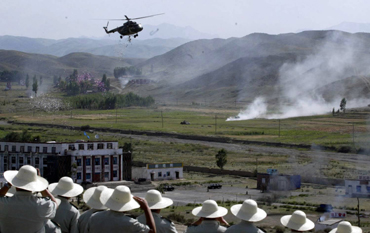 | | | | | | | | | | | | |  | | | Soliders storm a bus "hijacked" by "terrorists" in the second phase of the Shanghai Cooperation Organization (SCO)'s joint military exercise in Yili, Northwest China's Xinjiang Uygur Autonomous Region August 11, 2003. More than 1,000 officers and soldiers from SCO's five member states, including China and Russia, take part in the anti-terrorism maneuver. The first phase of the drill was held in Kazakhstan's border city of Ucharal.[Xinhua] | | | | | | | | | | | | |  | | | The second phase of the Shanghai Cooperation Organization (SCO)'s joint military exercise kickstarts in Yili, Northwest China's Xinjiang Uygur Autonomous Region August 11, 2003. More than 1,000 officers and soldiers from SCO's five member states, including China and Russia, take part in the anti-terrorism maneuver. The first phase of the drill was held in Kazakhstan's border city of Ucharal.[Xinhua]