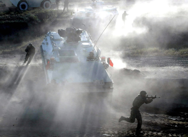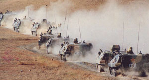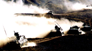 | | | | | | | | | | | | |  | | | The officers and men from the 3rd Squadron of the Kashi Detachment of the Armed Police Force, stationed in Taklamakan Desert, practice hard to safeguard the stability in the frontier area.The picture shows they are in tactical training in Gobi Desert.[PLA Daily] | | | | | | | | | | | | |  | | | Soldiers from a unit of the Guangzhou Military Area Command are in an overwater driving training. The unit are taking all kinds of measures to enhance its fighting capabilities. [PLA Daily] | | | | | | | | | | | | |  | | | An armored regiment of the Xinjiang Military Area Command goes deep into desert to conduct adaptability training, through which its integrated combat capability has been greatly improved. [PLA Daily] | | | | | | | | | | | | |  | | | The valiant efforts of armed police who repaired a collapsing dyke in East China on the evening of July 8, 2003, saved more than 1 million people at risk from serious flooding. The collapsed dyke on the Chuhe River, which flows across Anhui and Jiangsu provinces, threatened the Beijing-Shanghai railway artery and Nanjing, capital of Jiangsu Province, 50 kilometres away, said officials with the Anhui flood control department. [newsphoto.com.cn] | | | | | | | | | |