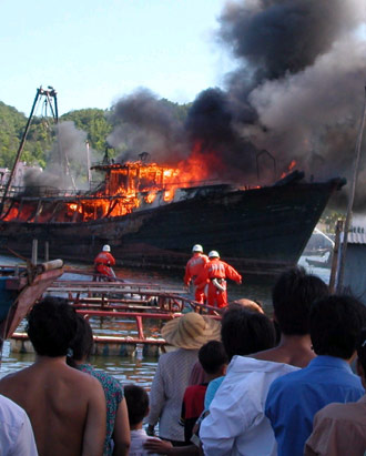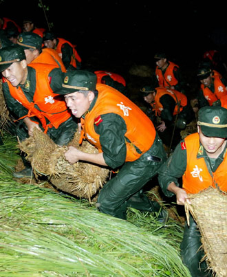 | | | | | | | | | | | | |  | | | Soldiers evacuate residents in East China's Jiangsu Province, due to flooding from the Huaihe River. The water level in Hongze Lake in Jiangsu continues to climb with the continuous heavy rain throughout the region. By 8:00 a.m. Thursday, the water level in the lake had reached 14.14 meters, 0.08 meters above the maximum reached in 1999, when the lake was hit by one of the worst floods in China's history. [newsphoto.com.cn] | | | | | | | | | | | | |  | | | Firefighters try to quell fierce flames in a wholesale small-commodities market in Shiyan, Central China's Hebei Province July 8, 2003. Several hundred wholesalers' properties were reduced to ashes and seven firefighters were injured. The cause of the fire is under investigation. [newsphoto.com.cn] | | | | | | | | | | | | |  | | | In the light of the need for the preparation of military struggle, a regiment of the Jinan Military Area Command conducts regular field mobility trainings in a bid to find deficiencies in their combat readiness and make improvements on this basis. The picture shows the regiment conducts emergent mobility training recently. [PLA Daily] | | | | | | | | | | | | |  | | | Onlookers watch firemen trying to put out fierce fire which broke out in two big fishing boats anchored for repair and maintenance in Sanya, a port in southern China's Hainan Province. The fire was the result of an electrical fault and lasted for more than one hour, causing damage of at least 3 million yuan (US$360,000). [newsphoto.com.cn] | | | | | | | | | | | | |  | | | In the light of the special features of future war, an armored regiment of the Xinjiang Military Command actively explore the new training methods and combat skills with the aim of improving the troops' scramble capability, field survival capability and accompanying support capability. The picture shows the troops are conducting maneuver training. [PLA Daily]