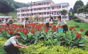 | | | | | | | | | | | | |  | | | A unit of the Guangzhou Military Area Command strives hard to do a better job in afforestation of their barracks and has been cited as "the advanced unit of afforestation " by the Guangzhou Military Area Command recently. In the picture, the servicemen are trimming grasses and flowers.[PLA Daily]