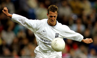 The game featured a strong representation of Real Madrid players, including David Beckham and the club's sports director Emilio Butragueno, a former star striker for the team. Other participants included the Czech Republic's Jan Koller and Netherlands' Edgar Davids. In addition, Formula One's Michael Schumacher played and swapped teams at halftime, while teenage Spanish Davis Cup star Rafael Nadal also donned boots in the second half. Several retired players such as Argentina's Fernando Redondo, Serbia-Montenegro's Predrag Mijatovic, and Croatia's Davor Suker also appeared. Ronaldo's team was coached by Luiz Felipe Scolari, Mario Zagallo and Carlos Alberto Parreira, all of whom have guided Brazil to World Cup triumphs. Zidane's side was under Italy coach Marcello Lippi and Frenchmen Didier Deschamps and Luis Fernandez. Ronaldo and Zidane also led teams in the first "Match against Poverty" in Basle, Switzerland a year ago, and generated over a million Swiss francs (US$866,000).