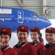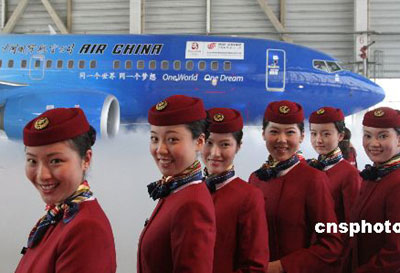 in front of the 2008 Olympic-themed Boeing 737 jetliner owned by Air China