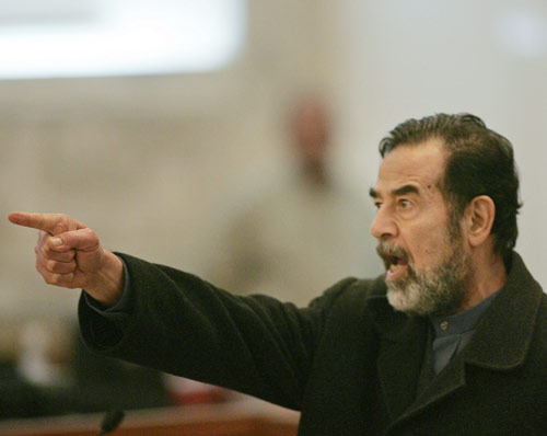 during his trial in Baghdad February 13, 2006. Saddam returned to court on