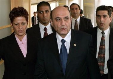 Minister Shaul Mofaz, center, walks ahead to his meeting with US Assistant
