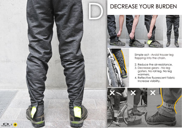 The trousers Yu Kehan designed won the D&AD Yellow Pencil Award in London. Participants for the competition are tasked with creating a product for urban commuter cyclists and Yu's design minimizes cyclists' burden and make them comfortable for both cycling and working. Provided to China Daily