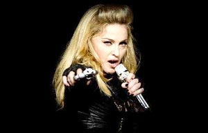 Pop singer Madonna performs in her solo concert in Amsterdam, the Netherlands.