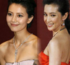 Chinese actress Gao Yuanyuan and Li Bingbing pose at the Asian Film Awards in Hong Kong March 22, 2010.