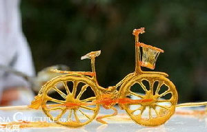 In and around Sichuan province, one can often find folk artists producing sugar paintings with liquid sugar along the streets, in the parks, and around the schools.