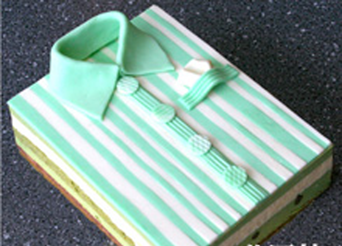 “襯衣蛋糕”表面色彩為綠色和乳白色的條紋,還配有綠色的領(lǐng)子和4個(gè)巧妙的襯衣紐扣,遠(yuǎn)遠(yuǎn)看起來(lái)就像一件折疊整齊的襯衣。