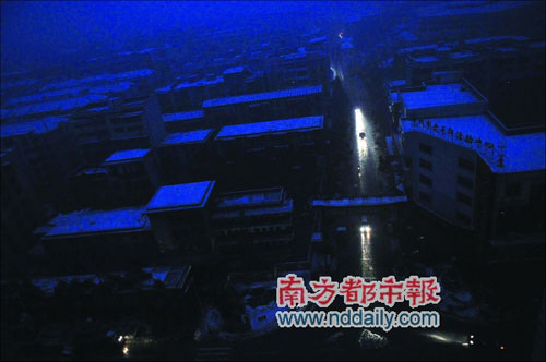 入夜以后,湖南郴州市區(qū)一片漆黑。(1月31日圖片)記者張志韜攝來源:南方都市報