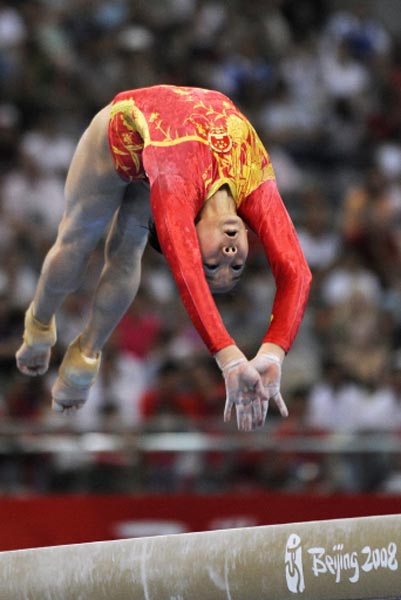 北京時間8月13日中午12點20分,2008年北京奧運會結(jié)束了體操女子團體決賽的爭奪,中國隊以188.90分獲得冠軍,歷史上首次獲得了奧運會團體冠軍!這是中國代表團奧運史上獲得的第五枚團體項目金牌。美國隊以186.525分獲得亞軍,羅馬尼亞隊181.525分獲得季軍。
