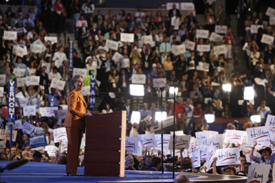 中國日報網(wǎng)環(huán)球在線消息:當(dāng)?shù)貢r間8月26日,美國民主黨全國代表大會進(jìn)入第二天,參議員希拉里·克林頓發(fā)表演講,號召在預(yù)選中力挺她的廣大選民支持奧巴馬入主白宮。她在演講中指出,奧巴馬“是我的候選人,他一定會成為我們的總統(tǒng)”。
