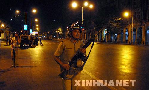 11月26日夜間的恐怖襲擊過后,警察在印度孟買街頭警戒。新華社發(fā)