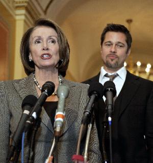 向來作風(fēng)強(qiáng)硬的“鐵娘子”、眾議院議長佩洛西也無法抵御皮特的魅力。她不僅當(dāng)著一幫記者的面猛夸皮特為遭到颶風(fēng)襲擊的奧爾良重建做出了“巨大貢獻(xiàn)”,還像個(gè)小姑娘一般興奮,稱和皮特見面“讓我有了向孩子和孫子孫女炫耀的權(quán)利”。一名在國會(huì)大樓里看到皮特的聯(lián)邦參議員給熟識的媒體發(fā)短信,先是大贊“皮特太英俊了”,不過接著說“就是有點(diǎn)太瘦了”。