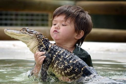 澳大利亞3歲男童同鱷魚(yú)親密嬉水 與蟒蛇為友