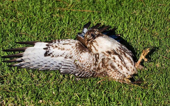 因為貪吃被撐到倒地?zé)o法動彈的貓頭鷹 2013年1月,一名攝影師在美國加利福利亞長灘自然保護區(qū)附近抓拍到一只紅尾貓頭鷹在一頓飽餐后,被撐到無法動彈,只好仰面躺地上休息的場面。隨后攝影師叫來保護區(qū)工作人員幫助這只貪吃貓頭鷹脫困。據(jù)悉,第二天,貓頭鷹狀況好轉(zhuǎn)許多,工作人員將它放歸了大自然。