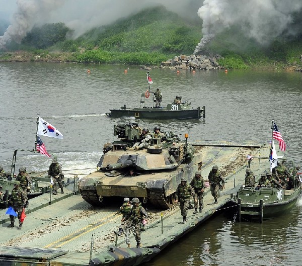 據(jù)悉,美韓此次軍演的主要內(nèi)容包括在臨津江架設(shè)浮橋,利用水路兩棲坦克渡江等。美韓軍方共有400余人參加此次軍演,出動坦克和裝甲車共計8輛。