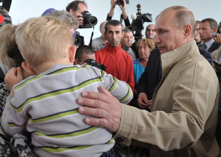 當(dāng)?shù)貢r(shí)間2013年8月30日,俄羅斯哈巴羅夫斯克,俄羅斯總統(tǒng)普京視察遠(yuǎn)東洪災(zāi)地區(qū)。