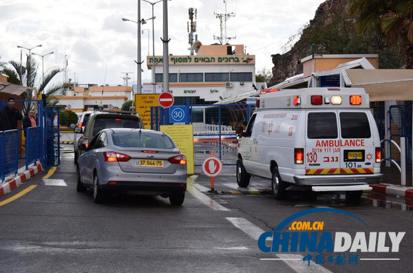 2月16日,一輛救護(hù)車在埃及與以色列交界的西奈半島塔巴口岸以色列一側(cè)附近待命。(圖片來源:新華社)
