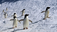 科學(xué)家發(fā)現(xiàn)一個(gè)巨型冰山,漂移到英聯(lián)邦海灣丹尼森角,阻礙了一群阿德利企鵝的覓食路徑,短短數(shù)年間已有約15萬(wàn)只企鵝死亡。