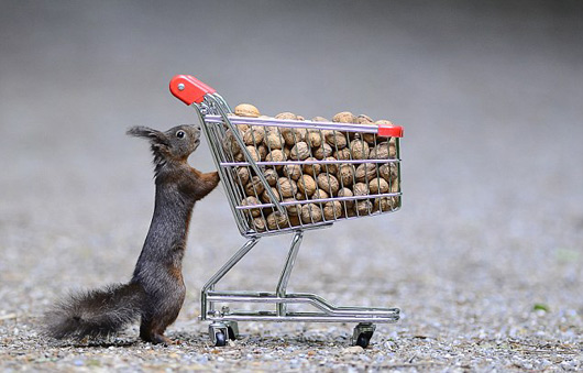 圣誕節(jié)即將到來,連小松鼠也開始忙活著囤食物過冬了。在瑞士攝影師吉多·沃克的鏡頭中,松鼠們不僅用推車“收集”堅果,還快樂地玩起了老虎機、踢起足球等,看上去十分充實忙碌。