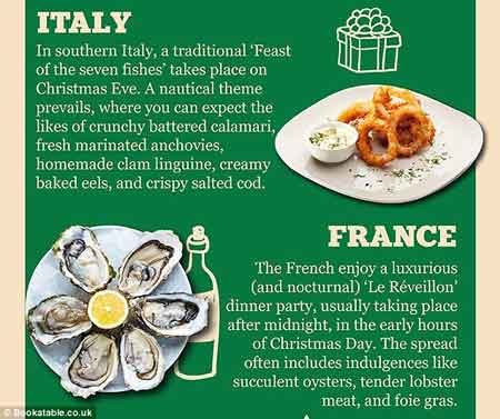 Seafood crops up on the menu in several countries, particularly those with warm December climates.