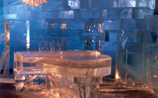 A piano made from ice was an unusual decorative - and functional - element in the 2001 Icehotel.