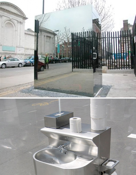 在眾人面前入廁,是不是難以想象?設(shè)計(jì)師莫妮卡·邦維尼奇(Monica Bonvicini)建造的這座公廁正是要挑戰(zhàn)人們的恐懼。這個(gè)公廁在倫敦泰特美術(shù)館(Tate Gallery)外,由單向鏡面組成。使用者可以看到外面的街景,路過(guò)行人卻只能從鏡面看見自己。即便如此,看到外面眾多行人經(jīng)過(guò),使用者還是忐忑不安吧。