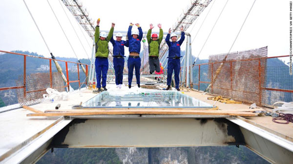 玻璃橋原本預(yù)計將在2015年底完工,最新消息稱將于今年5月份開放。