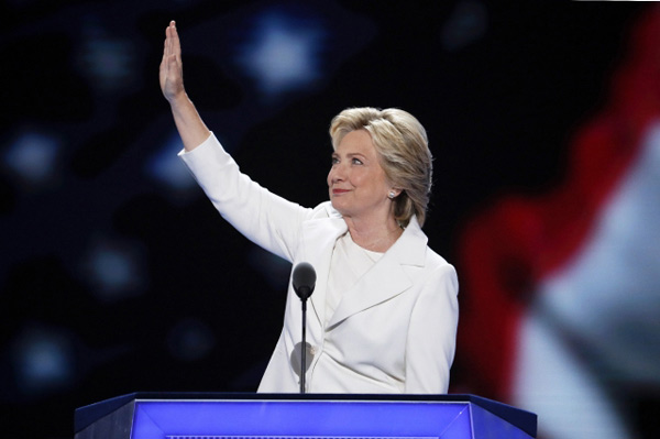 當(dāng)?shù)貢r(shí)間26日,美國(guó)前國(guó)務(wù)卿(former secretary of state)希拉里·克林頓在賓夕法尼亞州費(fèi)城召開(kāi)的民主黨全國(guó)代表大會(huì)(Democratic National Convention)上正式獲得該黨總統(tǒng)候選人提名(be formally anointed Democratic presidential candidate)。當(dāng)天,來(lái)自美國(guó)50個(gè)州、哥倫比亞特區(qū)和海外領(lǐng)地的各代表團(tuán)逐一公布了投票結(jié)果。南達(dá)科他州公布投票結(jié)果后,希拉里所得黨代表票數(shù)累計(jì)超過(guò)獲得提名所需的2383票(Clinton has more than the 2,383 delegates needed to win the party's nomination)。美國(guó)廣播電視新聞網(wǎng)對(duì)此評(píng)論稱,希拉里成為總統(tǒng)候選人打破了美國(guó)政壇一道依然存在的"看不見(jiàn)的屏障(invisible barrier)"。在希拉里被提名后,其丈夫、美國(guó)前任總統(tǒng)比爾·克林頓發(fā)表演講,稱贊希拉里為天生的領(lǐng)導(dǎo)者(natural leader),也是其一生中遇到的最佳革新者(the best darn change-maker he has ever met in his entire life)。28日希拉里正式接受了民主黨總統(tǒng)候選人提名,承諾提供"穩(wěn)定的領(lǐng)導(dǎo)(steady leadership)"并為美國(guó)人創(chuàng)造更多的經(jīng)濟(jì)機(jī)會(huì)(more economic opportunities for Americans)。