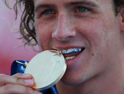 最讓人難忘的是美國(guó)游泳名將羅切特,2009年7月30日,在意大利羅馬舉行的第13屆世界游泳錦標(biāo)賽男子200米個(gè)人混合泳決賽中,美國(guó)名將羅切特以1分54秒10的成績(jī)奪冠并打破由隊(duì)友菲爾普斯保持的原世界紀(jì)錄,在領(lǐng)獎(jiǎng)臺(tái)上羅切特戴鉆石牙套咬金牌,成為亮點(diǎn)。