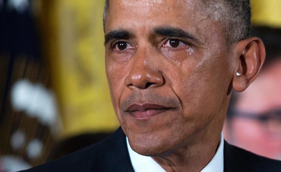 2016年1月5日,在白宮記者招待會上,奧巴馬在談?wù)撊f桑迪胡克小學(xué)槍擊案的遇難者時(shí)流淚了。