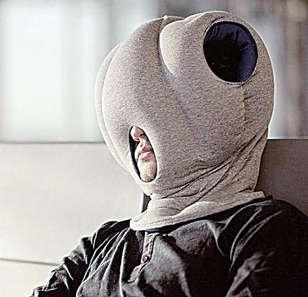 鴕鳥枕是搭乘火車或者汽車長途出行乘客的福音。戴上這個枕頭之后,你的頭就變成了一個枕頭,前面有口鼻呼吸的小孔,兩側(cè)可以把手伸進(jìn)去保暖,趴在桌上也不會覺得不舒服。
