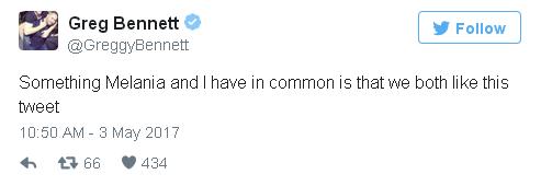 “我和梅蘭妮亞的共同點(diǎn)就是我們都喜歡這條推特?!?/p>