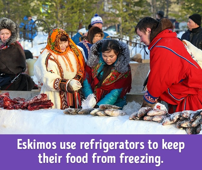 14. 對(duì)于愛斯基摩人來(lái)說(shuō),冰箱的用途就是讓食物不至于凍成冰塊。