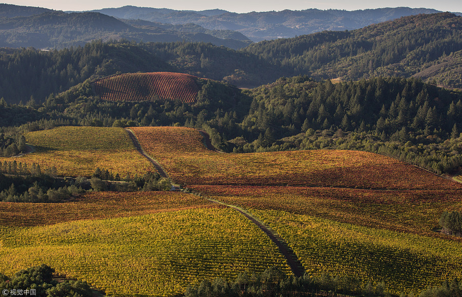 美國加利福利亞州的索諾瑪縣(Sonoma County)坐落在太平洋和納帕谷(Napa Valley)之間。該產(chǎn)區(qū)所產(chǎn)的葡萄酒幾乎是整個納帕谷葡萄酒的2倍。每到秋天,漫山遍野的金色葡萄園,美得令人震撼。