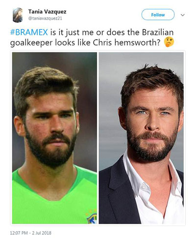 “Fun Fact - Brazilian goalkeeper Alisson is actually the fourth Hemsworth brother.”