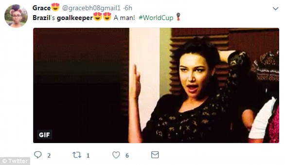 “本來打算支持墨西哥隊,但是我的媽呀,你們看見巴西隊的門將了嗎?太性感了!”