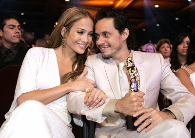 Singer Marc Anthony (R) sits with his wife, actress Jennifer Lopez after he received the Celia Cruz award at the 2006 "NCLR Alma" awards at the Shrine auditorium in Los Angeles May 7, 2006. The National Council of La Raza (NCLR) gives out the ALMA awards to honor outstanding Latino artistic achievement in television, film and music.(Reuters)
