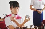 Student flight attendants receive professional training in a simulation cabin in Wuhan, Hubeiprovince, on Oct 9, 2012.