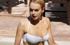 Lindsay Lohan enjoyed a beautiful sunny day by the pool at her hotel in West Hollywood, Lindsay's left arm has strange marks.